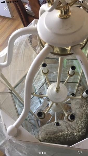 Reduced to sell! Huge chandelier with 3 sets of lights. Best offer will be accepted. I don't have any history on this awesome Chandelier, other than it was purchased at an Auction. Condition is near perfect, as far as I can tell with it being wrapped up tight. All reasonable offers will be considered, serious buyers only please. No holds, until confirmation is received buyer is on way to purchase.