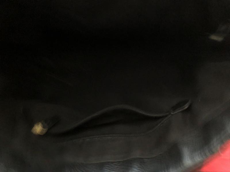 As pictured. All the snaps zippers work etc. fairly large bag. 16 inches across 11 inches high black. If you need more pictures to make an informed decision let me know I can hook you up.
