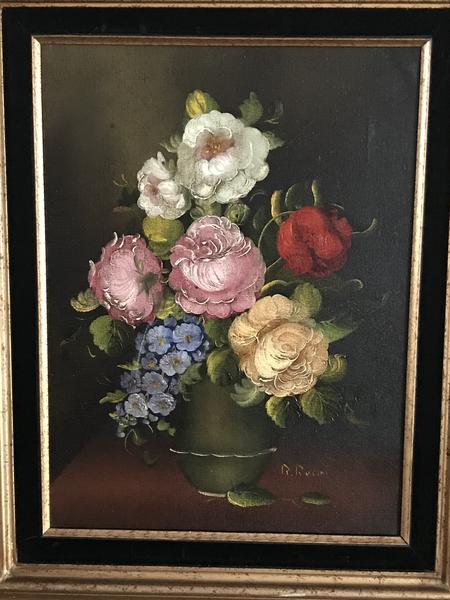 VITO RUGGERI (Italian, 1902 - 1989) Antique Floral Still Life original canvas FRAMED