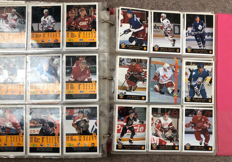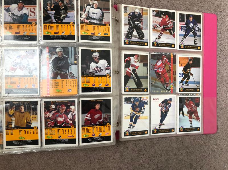 As pictured here’s a bunch of classic pro hockey prospects hockey trading cards in plastic in a notebook all in really good to excellent condition.