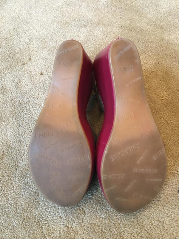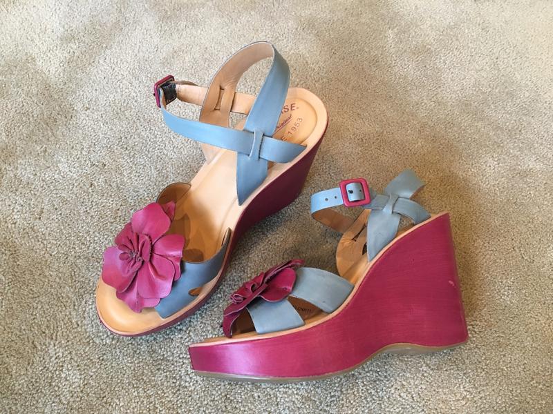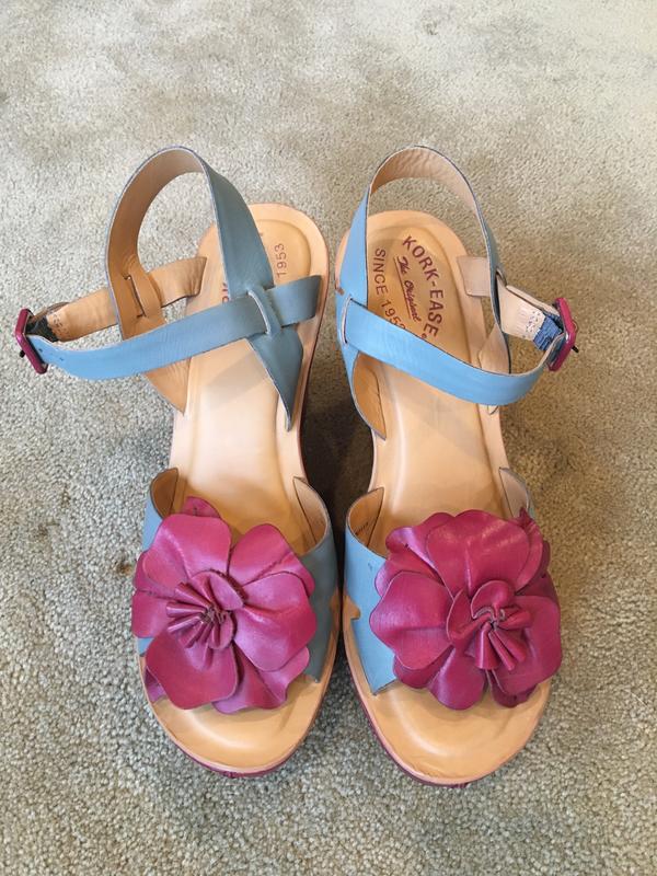 Kork-Ease Mina Tulip wedge sandals, women's size 10, EU 42. Gently used--some scuffing on the back (see photos). Blue and dark pink. Text if interested. Cash or Venmo.