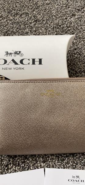 NEW! COACH wristlet wallet in gold. Includes care instructions and gift box. $50 (originally $75), cash only please.