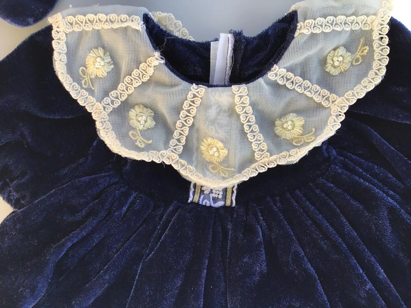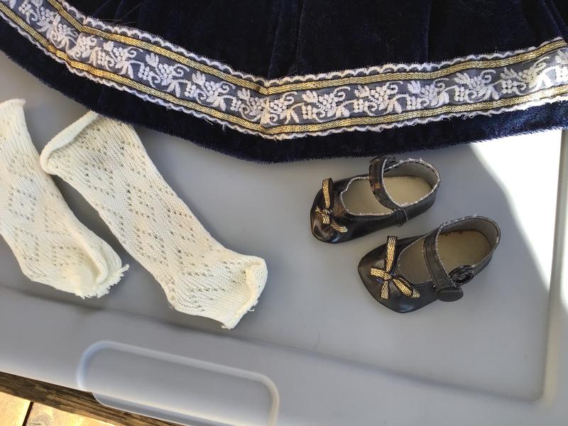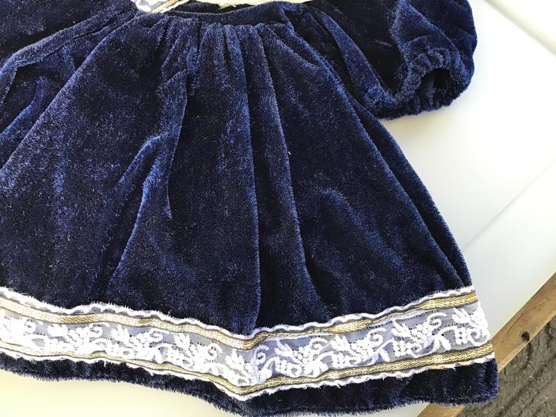 Dress Velcro’s in the back. Shoes snap on.The waist is about 12 inches,The length of the dress from the sleeve to the bottom is about 12 inches as well