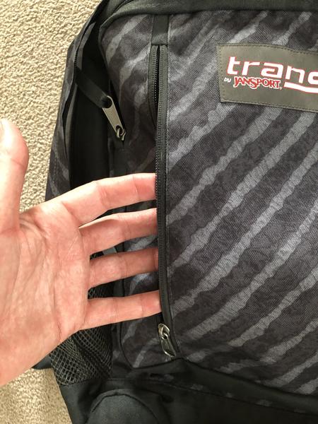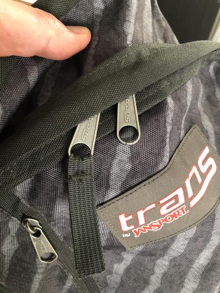 What we have here is a surprisingly large back backpack “Trans” by Jansport has a ton of different pockets laptop pocket, gear pockets, pen pencil paper etc. all could be carried. Could be used as a day pack could be used for your outdoor adventures could be used for schooling could be used for traveling (make a great carry-on) has kind of a black and gray kind a cool zebra pattern whatever you want to do with his bag it can be done with it you could store a lot of stuff in here whatever you need to do so let’s get together on this and get your good good price of $12.99.