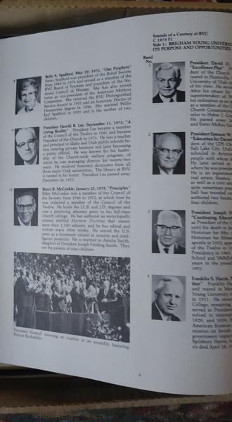 Brigham Young University: 1,000 Views of 100 Years book & Sounds Of A Century 4 records, fifty-five Unforgettable excerpts from Forum assemblies and devotionals. Memorable music from campus festivities and concerts, compiled by Lauren F WheelWright , produced by BYU sound services , distributed by BYU development office Provo, Utah. BYU gift set 1875/1975. In wonderful like new condition. Rare hard to find.