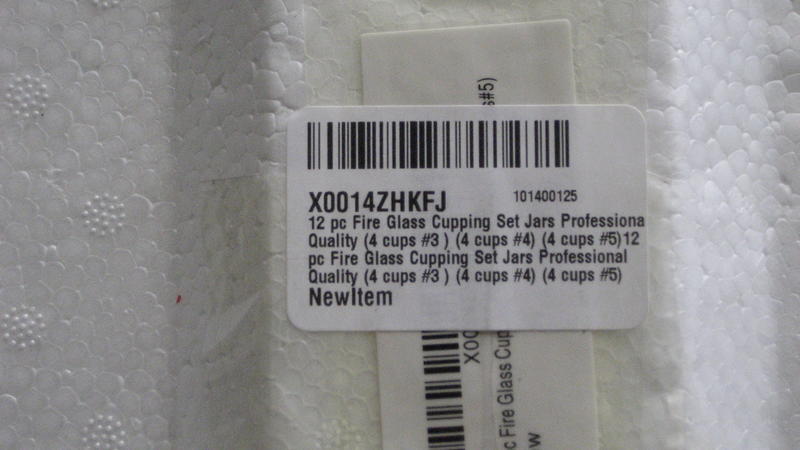 Brand New in Box. 12 pc Fire Glass Cupping Set Jars. Thick glass Professional Quality. Include 4 cups of #3( Medium Lip Diameter: 2.24") - 4 cups of #4 (Large Lip Diameter: 2.48 in") - 4 cups of #5 (Extra Large Lip Diameter: 2.70"). $25 for the set.