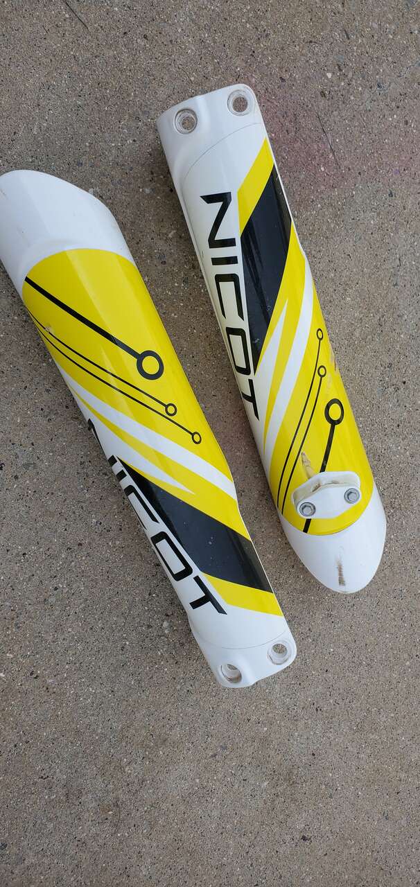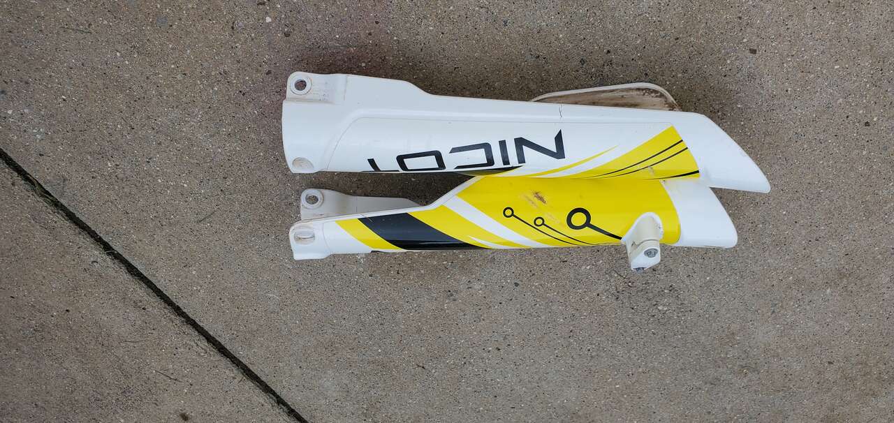 One set of fork guards for Husqvarna/KTM 2015-2021 (White color with yellow and black decals). $20