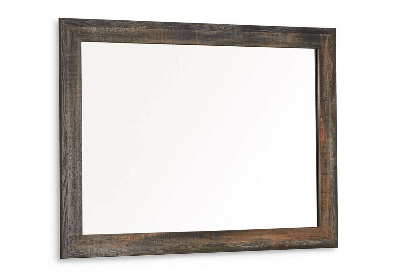 When merged in just the right way, rustic and industrial styles can make one happy marriage. Case in point: the Drystan dresser and mirror set. A refined take on barn board beauty, its complex, replicated wood grain showcases hints of burnt orange and teal tones for a sense of weatherworn authenticity. Elongated metal drawer pulls elevate the aesthetic.Made of engineered wood (MDF/particleboard) and decorative laminate