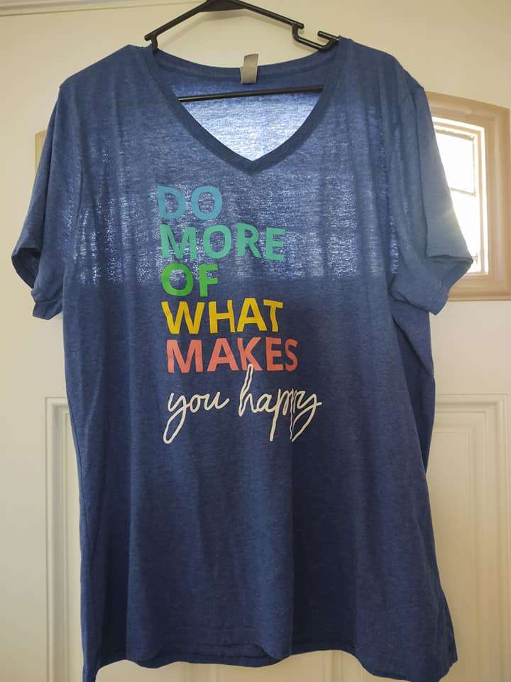 Women's Tshirt: "Do More Of What Makes You Happy" $10 Size: 2xl (Fits a little larger ..IJMO)