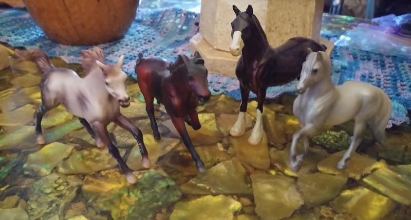 Set of 3 1999 Breyer Reeves Horses ~ Mini Whinnies 2.5" tall. And one isn't a Breyer in the photos Clydesdale is sold. Text only and no scammers. Cash or Venmo. Ty