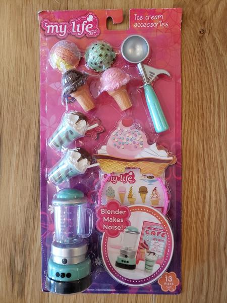 NEW! Blender makes noise! Also includes 2 wafer cones, 1 ice cream scoop, 4 different ice cream scoops (rainbow, chocolate, strawberry, mint), 2 ice cream shakes, 1 headband, 1 sticker sheet and 1 ice cream shop sign. Call or text any time. Cash only please. Firm on price. I can meet in Kaysville (Tuesdays or Fridays) or the South Weber Maverick. Please see my other ads. Thanks!
