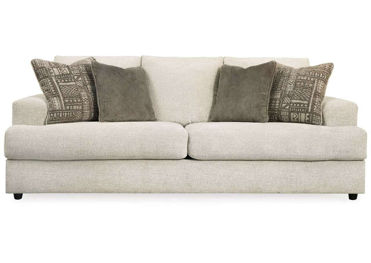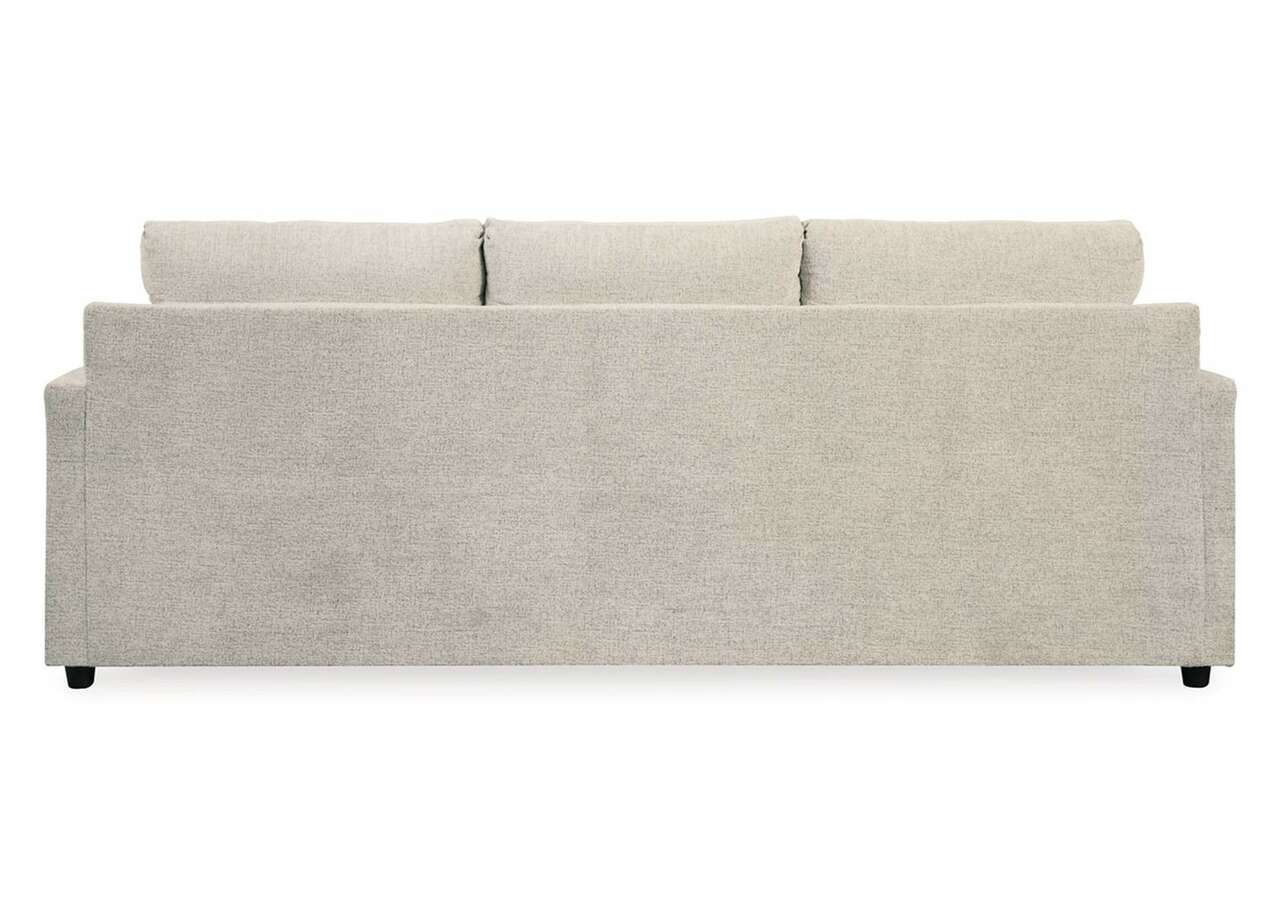Flaunting a trendsetting silhouette, this sofa sleeper puts the contemporary in your contemporary home. Its “three over two” profile eliminates the center seat cushion, giving you elongated plushness and deep seating. Chunky chenille fabric satisfies your need for a piece that feels as good as it looks. Accented with soft jacquard chenille throw pillows for a splash of geometric pattern and color contrast. Pull-out queen mattress in quality memory foam comfortably accommodates overnight guests.Corner-blocked frame