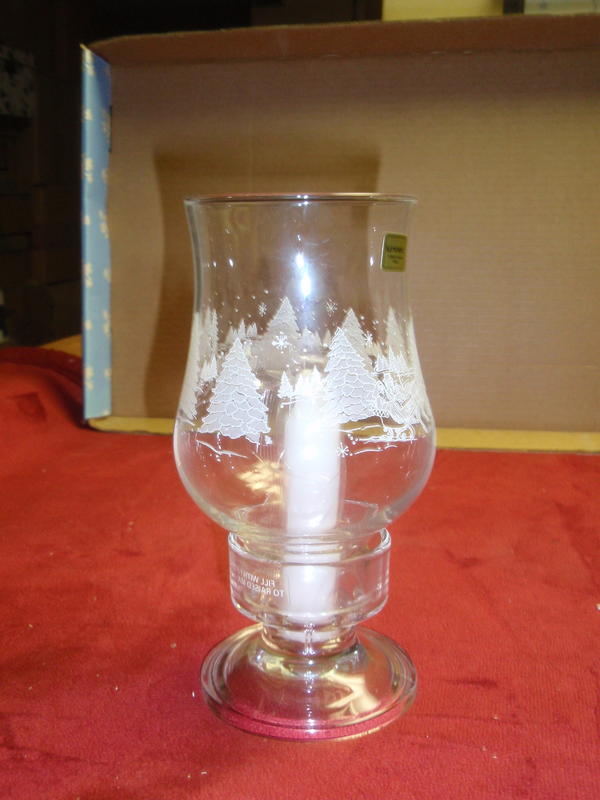 $80 23 piece holiday glassware set with trees, 2 mugs, 11 stem glasses, 4 tall glasses, 2 tumblers, large serving bowl, vase, candle holder and candy bottle. NEW IN BOXES.