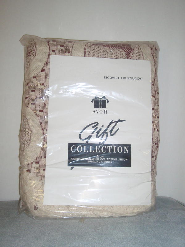 $15 Avon Burgundy and white throw. NEW.