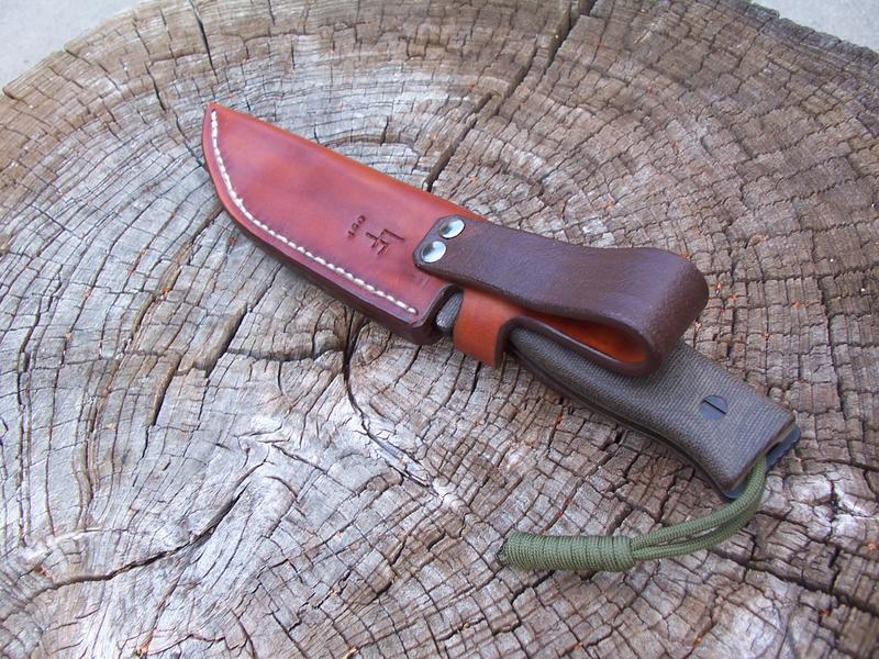 All leatherwork is treated with an application of Sno-Seal Original Beeswax Waterproofing for protection from rain, sun, snow, and salt giving the sheath a very nice patina.