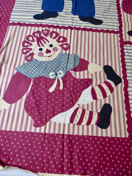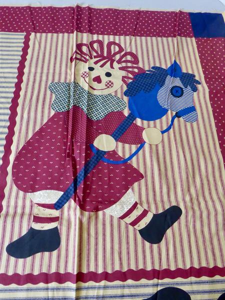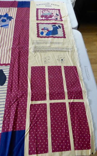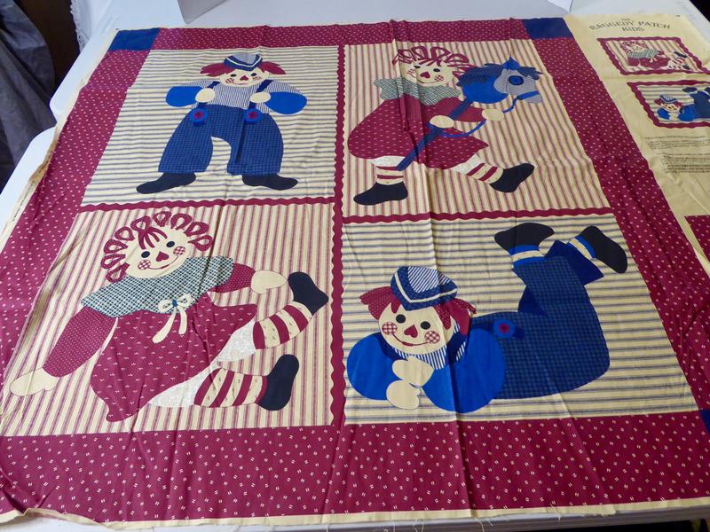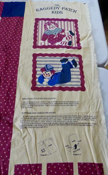 The whole fabric panel Measures … 45 inches Wide and 35 inches Long . It has fabric tabs that you can make to use if you are making a wall quilt to hang it onto a wall.