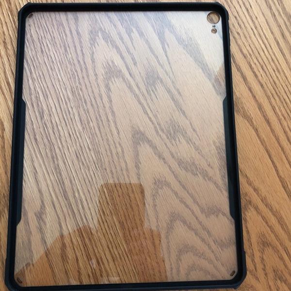 OK what you’re looking at here is a clear cover for the iPad Pro 12.9 inch third generation from the year 2018 as you can see this is an excellent condition and will give you back and corner support/protection while at the same time is a very minimal design clear hard polyurethane or plastic material in very good shape