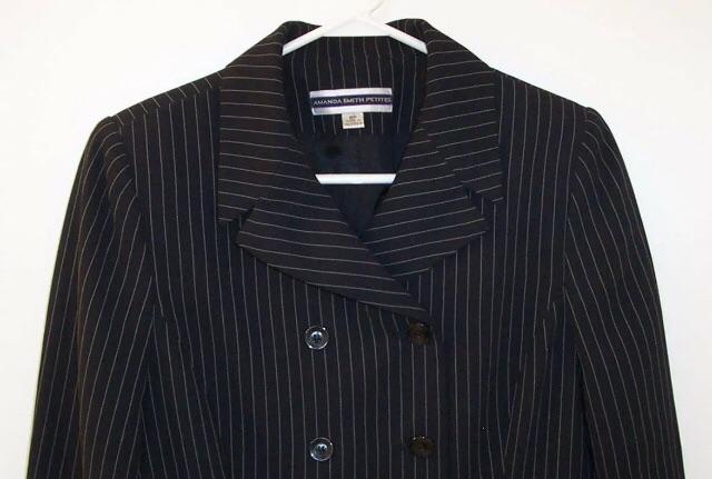 VenmoMSRP - $172! Save big $$ on this high quality Amanda Smith Petites pant suit in a size 8P. Three pieces included: Long, double-breasted jacket, pants, and skirt. All pieces are black pinstripe and fully lined. The pants are high waist and have an inseam of 28 and waist of 26. The skirt has a waist of 27 and measures 22.25 long. Very nice professional pieces to add to your wardrobe.