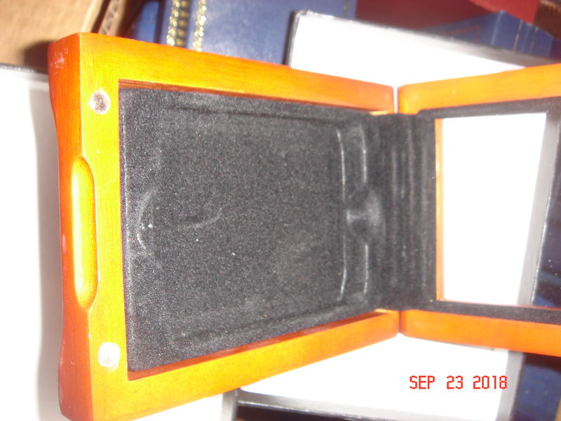 I have several boxes of nice wooden coin boxes for display and protection or your rare and collectible coins great for gift boxes most have presidential seals or other insignia on them many have the original certificates of authenticity form the coins that were in them