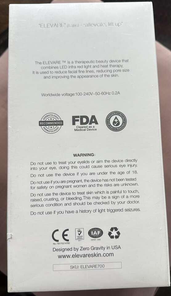 Do your research on benefits of this product and then compare our pricing to others. You would be pleasantly surprised how affordable this great device is. We have some new genuine ones in sealed boxes ($300), some open boxes ($250) and some barely used. ($200). We have limited number of these for sale. Once they are gone that is it. If you were ever interested in one of these luxury anti-aging devices, here's your chance to pick one up at the lowest price you'll find anywhere Clinically proven and dermatologist recommended, the Elevare Plus + uses red and infrared light and topical heating to rejuvenate the skin – all without side effects. Stimulate collagen production on a cellular level, Reduce fine lines and wrinkles and minimize pores, Eliminate skin discoloration and pigmentation