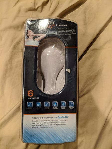 NEW Waterpik shower head Power Spray + 6 settings 5 foot hose