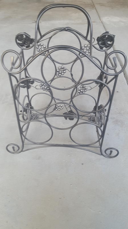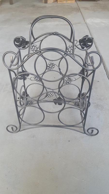 Gorgeous vintage wine holder. It can hold 6 bottles. A beautiful art piece.