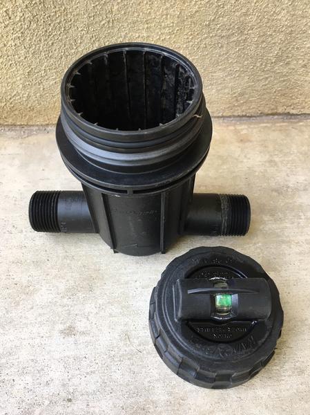 1 inch threaded input/output. Has indicater when filter needs to be cleaned. Filters inserts are shown for illustration. Different mesh available. White 200 mesh, Red 100 mesh, yellow 50 mesh. Multiples of Red & Yellow available for $20 each. Pickup in Clinton or arrange SLC