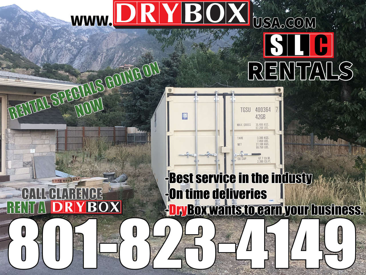 Call Clarence today 801-823-4149 or our Office @ 801-505-0002 for a no pressure quote or to get your container scheduled for delivery