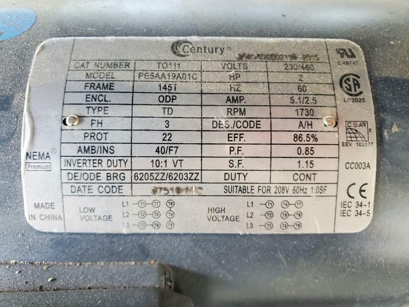 ApplePayNEW! CENTURY TO111 - PSC MOTOR 2 HP 1730 RPM PE5AA19A01C PRODUCT INFORMATION BRAND: CENTURY CAT NUMBER: TO111 Model: PE5AA19A01C RPM: 1730 Voltage 230/460, 208-230 60 Hz ODP (Open Drip-Proof)