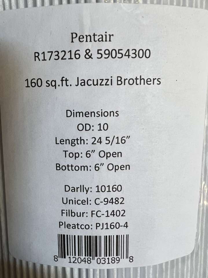 ApplePayNEW! PENTAIR R173216 59054300 CC150 PLEATCO PAP150 POOL / SPA REPLACEMENT FILTER CARTRIDGE OUTSIDE DIAMETER: 10-1/16 INSIDE DIAMETER: 5-7/8 LENGTH: 31-3/8 TOP END CAP: BAR HANDLE PLEAT COUNT: 240