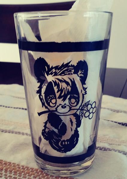 Vintage 10 ounce Panda with flower drinking glass. Does have a couple of scratches (as shown in last picture)...overall in good condition. $5...cash or Venmo only. TEXT 559-707-5899. Thanks for looking!