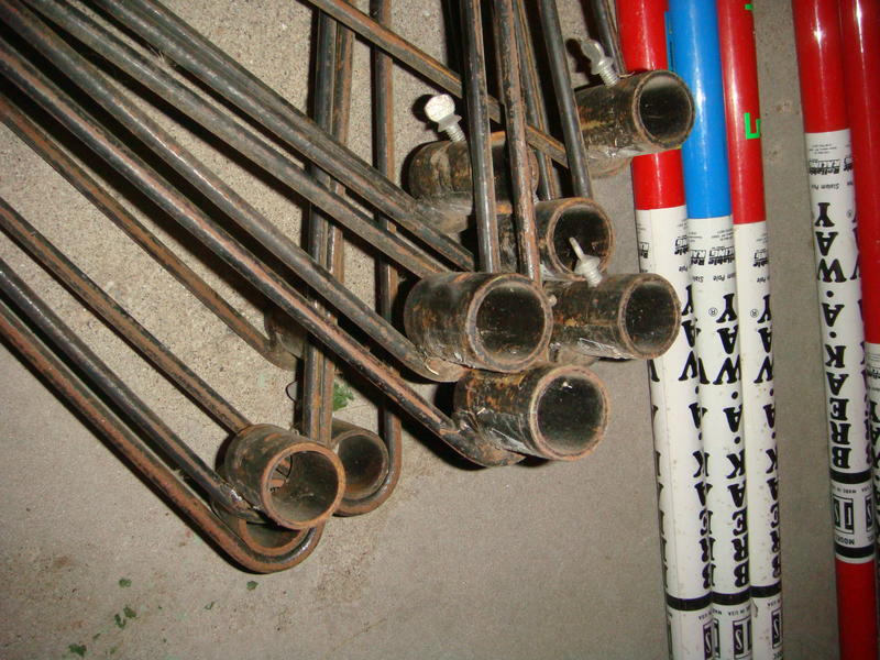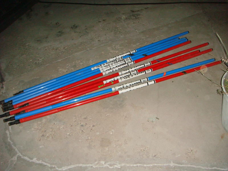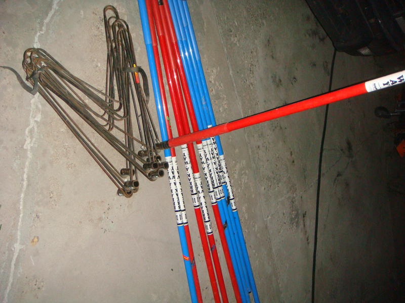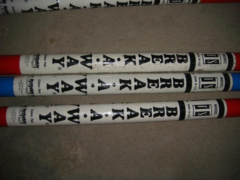 set of 10 breakaway slalom gates with dry-land bases 5 red and 5 blue breakaway gates with bases all 10 freestanding gates for 220.00 use a onewheel ,skateboard or rollerblased to run the course