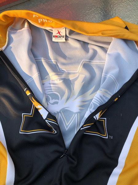 This jersey is from the University of Missouri and if you want to rep the Tigers (or just love the colors and design) this is a great chance for you to do so also these are pretty generous on the sizing so if you’re a bigger dude/gal you’re looking for a nice jersey and want this great and comfortable and by Hincapie design and workmanship then let’s get together on these as soon as possible..
