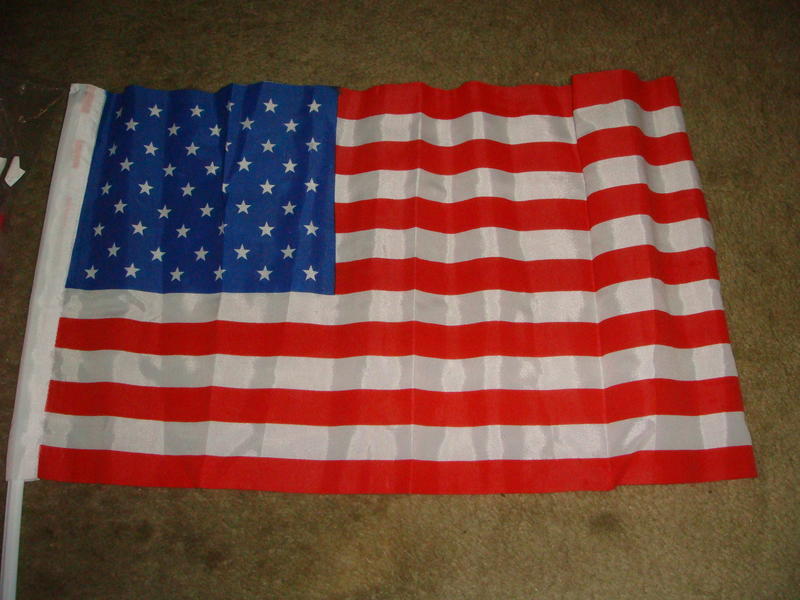 NEW AMERICAN FLAG FOR YOUR CAR CLAMPS TO YOU WINDOW AND WILL LOOK GOOD FLAPPING DOWN THE ROAD ,