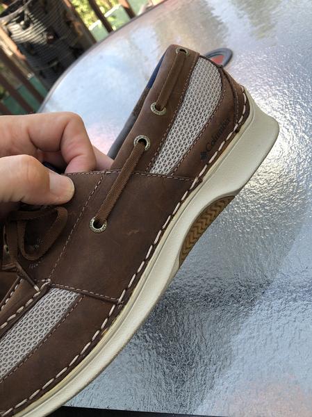 We have here is a Practically brand new pair of Columbia performance fishing gear boat shoes men’s size 11 in really excellent condition these are leather throughout with mesh in the intervening areas have a really great sole that is water wicking/repelling/nonslip and non-marking they’re in really excellent condition.
