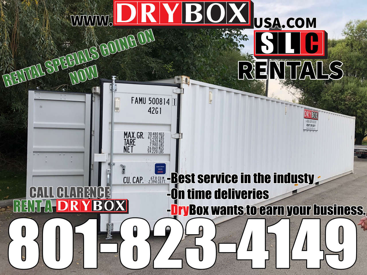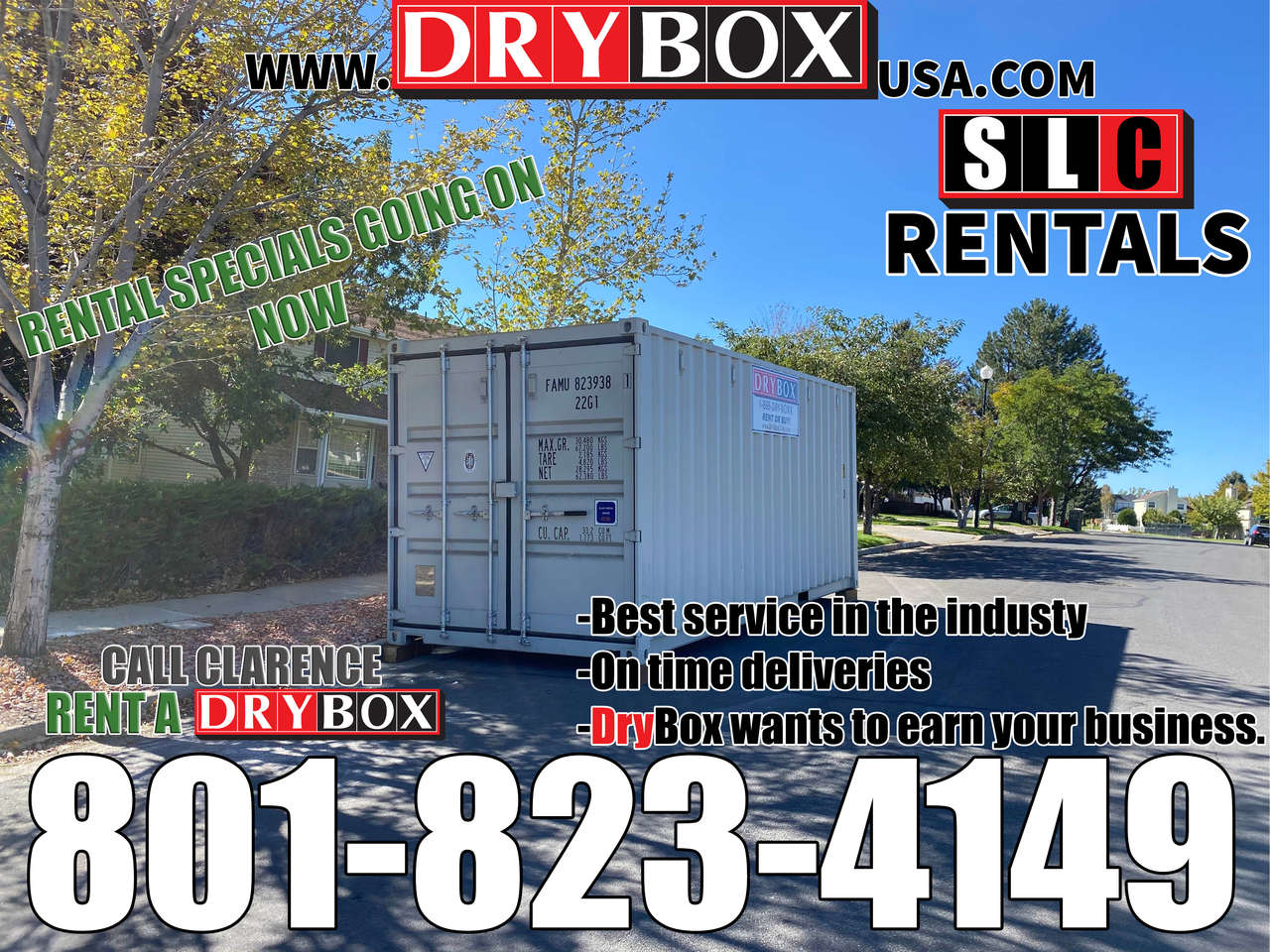 Call Clarence today 801-823-4149 or our Office @ 801-505-0002 for a no pressure quote or to get your container scheduled for delivery