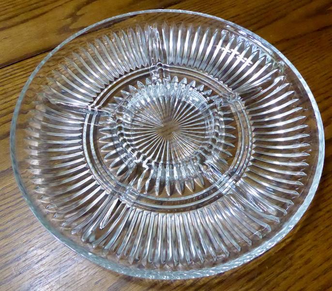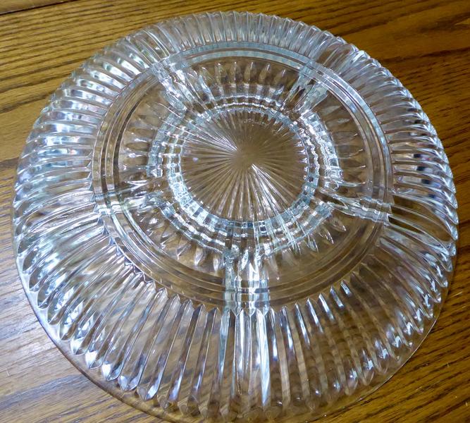 It has Five ( 5 ) very nice size sections to put all sorts of fun foods into for fun dinner parties etc…