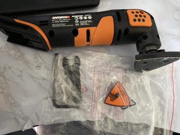 Includes attachments for cutting, sanding, and using other tool attachments. Does not include battery (I can give you one and a charger for $20 more).