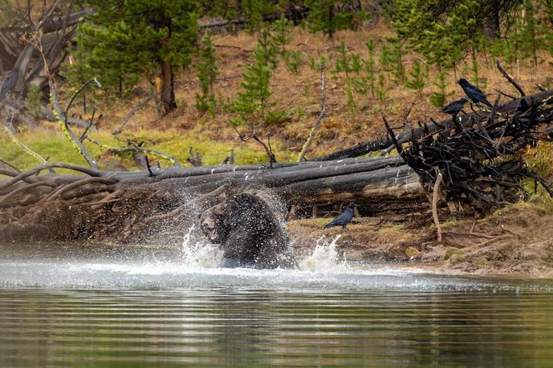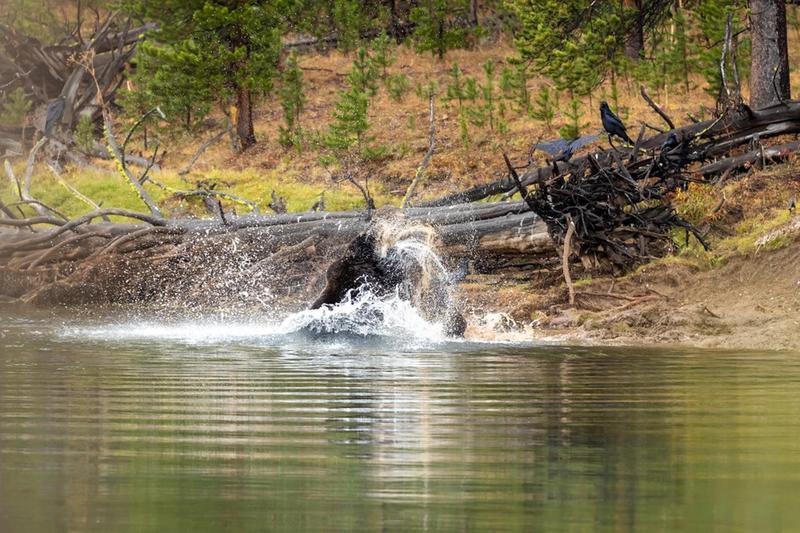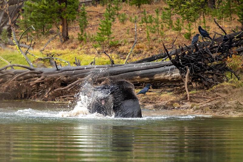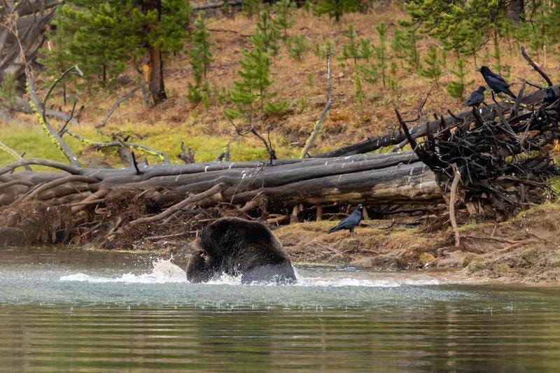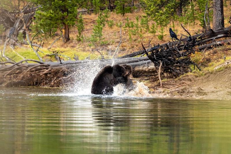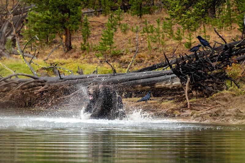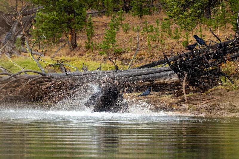 . This price is a 21x27” framed, matted and non glare glass This last weekend I had a great opportunity to see Yellowstone’s grizzlies at their best, 791 took down a elk over a week ago and all Apex predictors were on Alert. 791 left his post and another older grizzly “881”took over . On 27 sept about 0800 on a rainy morning 791 came out of the woods to reclaim his prize, well 881 grizzly wasn’t gonna give it up that easy so the fight was on!!!! At the end 881 grizzly won and secured his prize. 791 is 9 years old 881 is 17 years old .Enjoy my pic