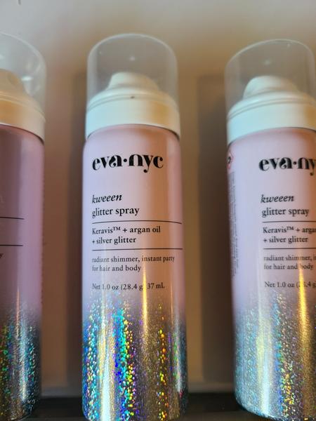 Set of 5 Eva NYC kween silver mini glitter spray 1 oz each. Fits perfectly in your purse for quick touch ups, care keravis, plus argan oil, plus silver glitter radiance shimmer, instant party for hair and body this sales at Anthropologie for $6 each so amazing deal for 5 of them great for the upcoming holidays cash only.