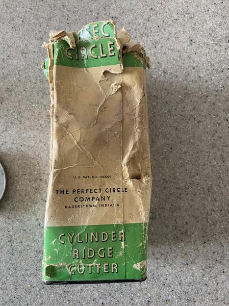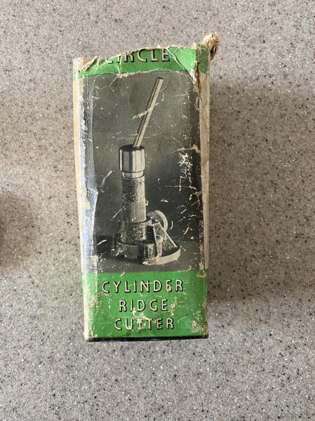 Antique Cylinder Ridge Cutter manufactured by the Perfect Circle Company of Hagerstown, Indiana. I believe all pieces are here. Has the original box, but it’s a little rough.