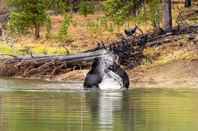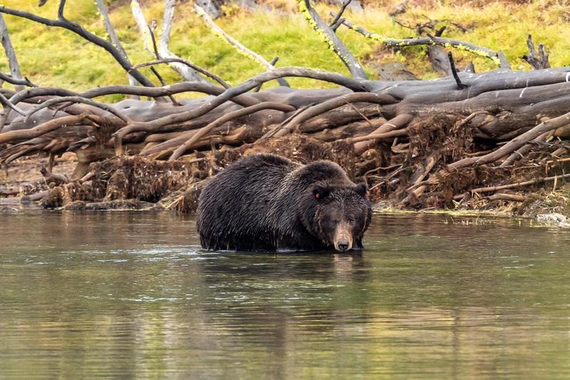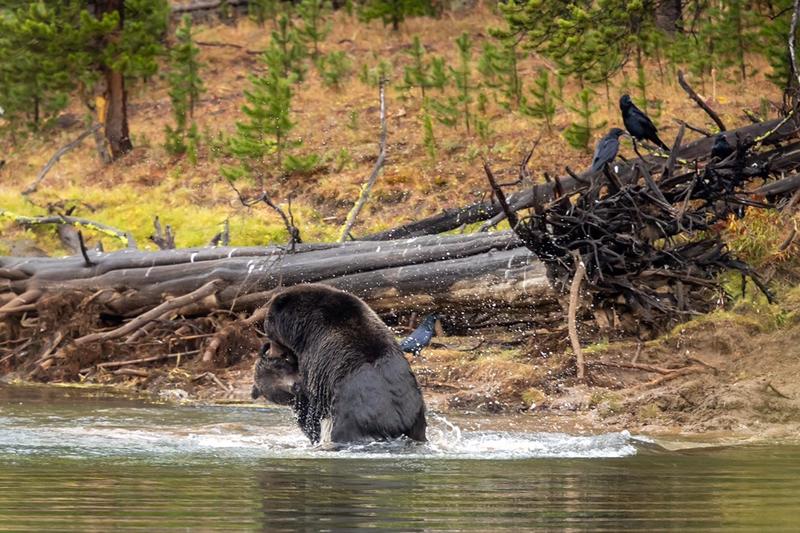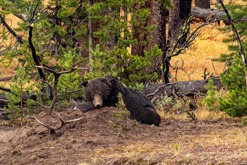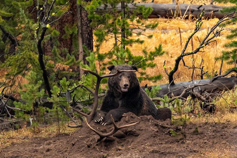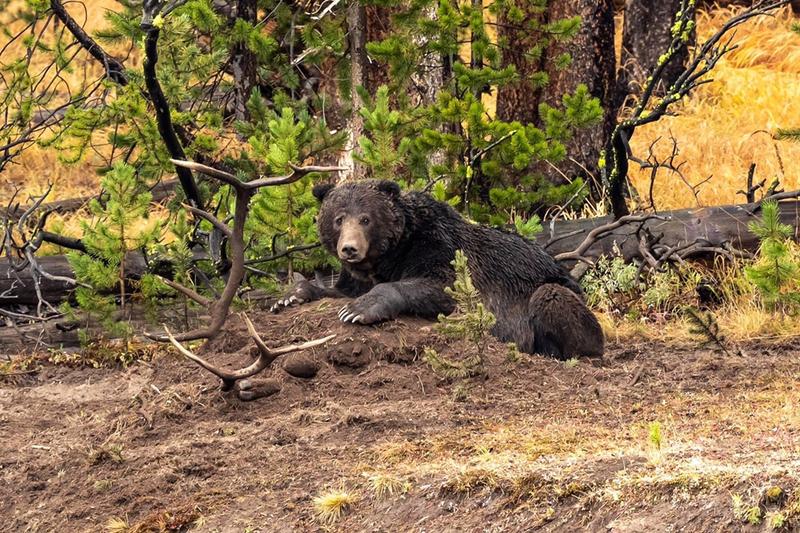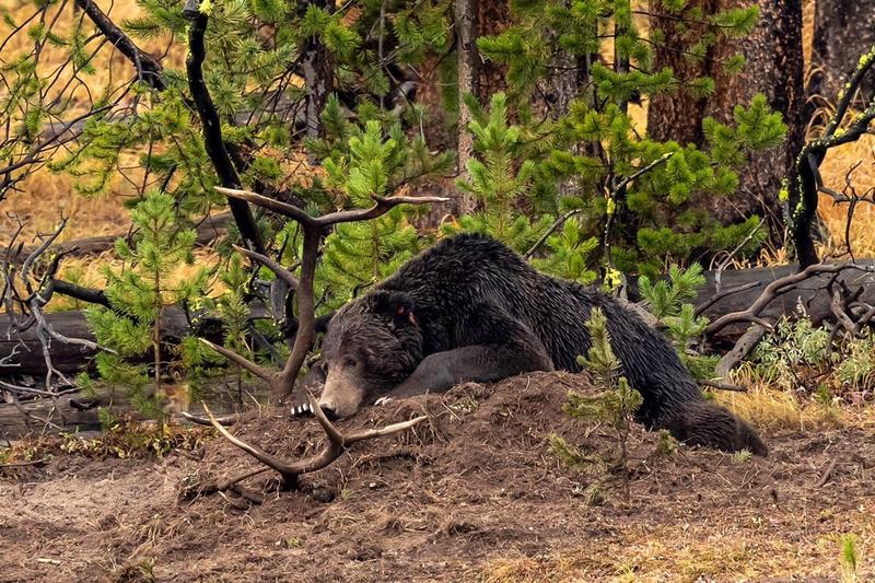 791” the darker grizzly “grizzly killed an elk 3 weeks ago and devoured most of it. After a week of defending his kill he left his post and 891 grizzly takes the remains and buried it again further up the embankment.791 came back for his spoils and thus the fight began all 15 seconds of it ,891 won and took his throne of dirt. . Pics are available at any size cost depending on size , framed or unframed. This price is a 21x27” framed, matted and non glare glass