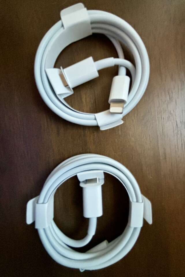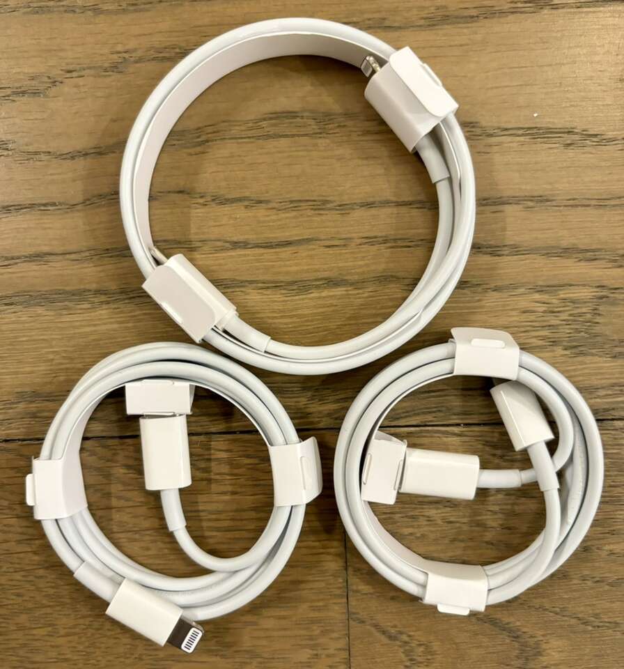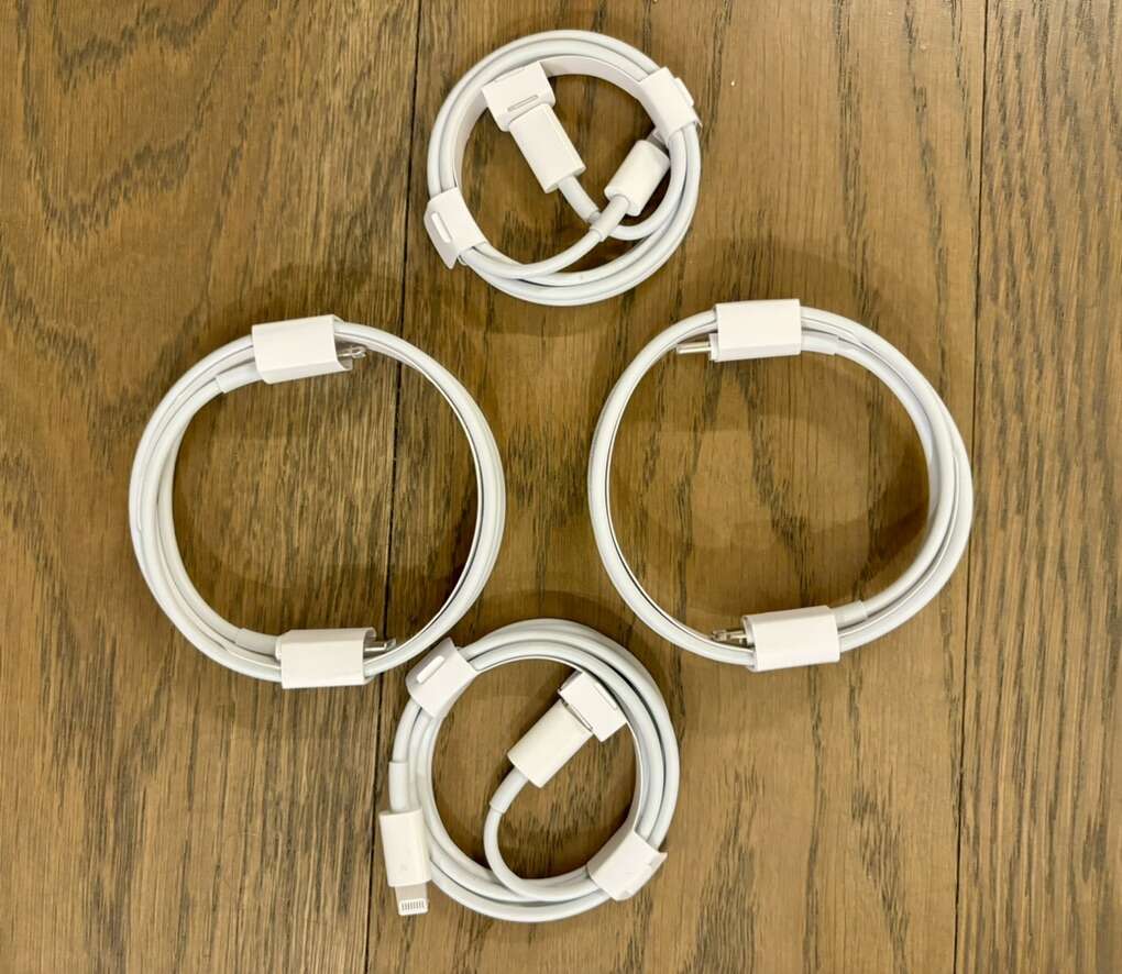 • 4 USB-C to Lightning Charging Cables made by Apple, each retailing for $29 + tax, new & never used, $8 each