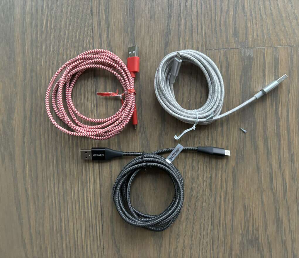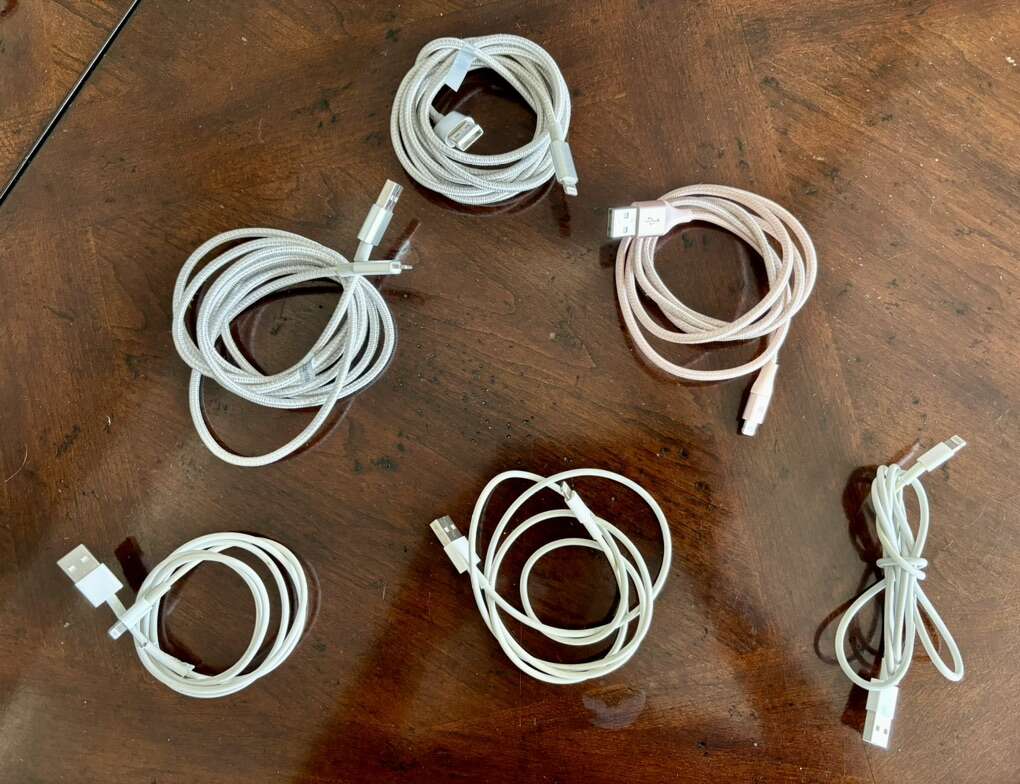 • 5 USB-A to Lightning 6-ft Charging Cables, 4 of which were made by Anker, $12 each