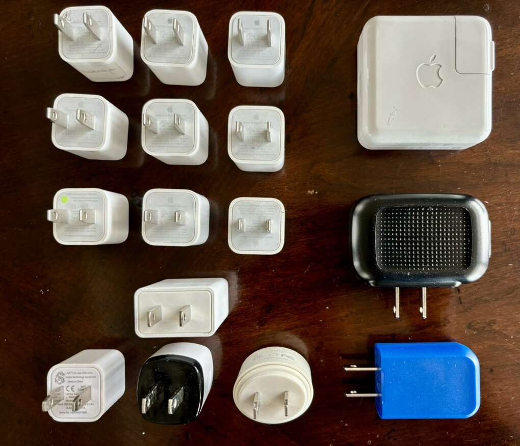 • 16 charger blocks, $3 each (except for $5 for the large white one by Apple)