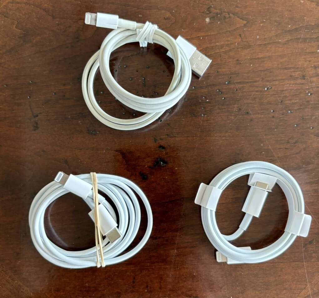 • 6 USB-A to Lightning Charging Cables made by Apple, $8 each