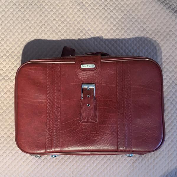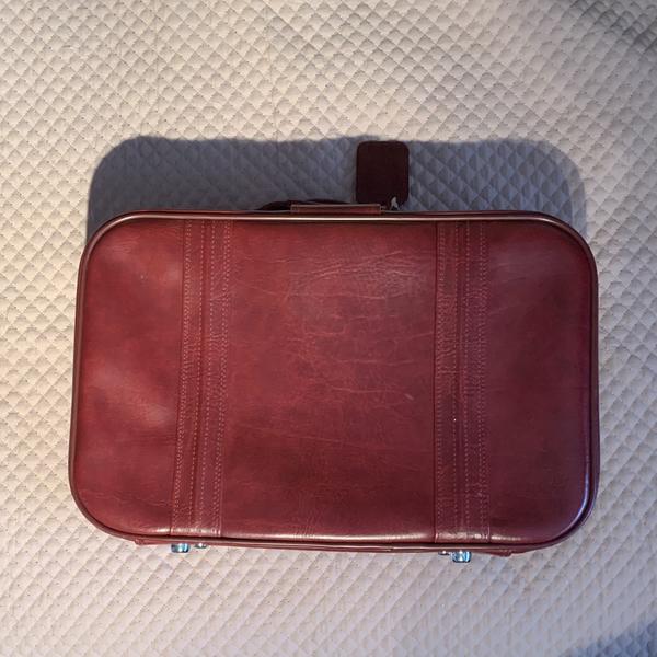 Two beautiful vintage luggage. Few scuffs but not really noticeable. Very well maintained. •First picture is the 2 together. •Second is the front and back of the medium luggage. •Third is the front and back of the small luggage. Small luggage 20x14x6.5 Medium luggage 22×15×7