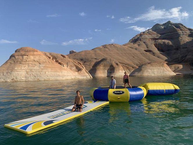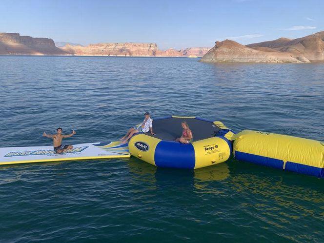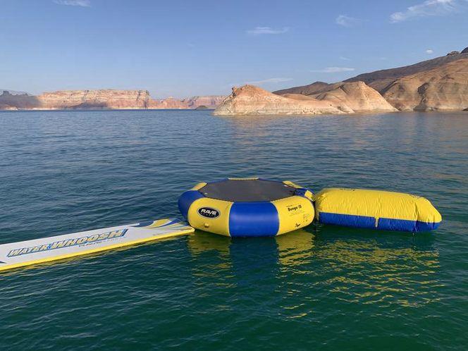 This floating water park party island is an absolute blast. 15 ft. inflatable trampoline bouncer with 20 ft. attachable "Whoosh" slip & slide float pad, and a launcher is included in this package. The components are made of durable materials and the whole system is easy to transport, set up, and take down. The titled price is a daily rate ($79.99/day), or a discounted weekly rate of $399.99/week. A $49 one-time cleaning fee is also mandatory with this rental. Call or text with any questions or to reserve this super fun package today. Super Fun Rentals 801-209-0100. *A 20% holiday price premium for select weekends (i.e. July 4th, July 24th etc...) also applies to this item.*