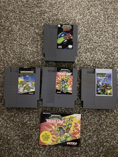 NES TMNT 1 $25 NES TMNT 2 $40 Manual $10 NES TMNT 3 $80 NES TMNT tournament Fighters $380 Games come with cartridge sleeves