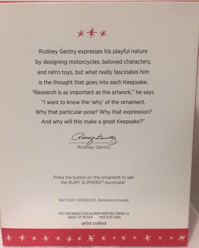 VenmoBrand new in box. Press a button and the ruby slippers light up. Batteries included. I have a few available. They would make nice gifts.